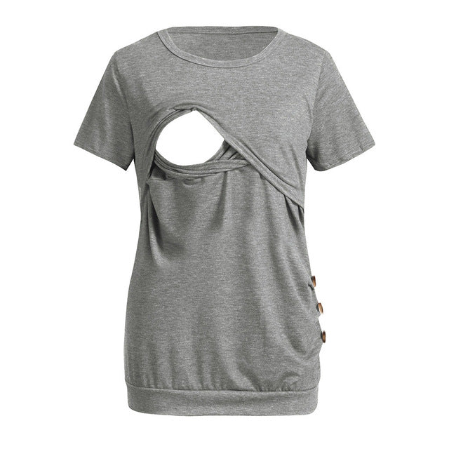 Women's Nursing Short Sleeve Solid Print Tops Breastfeeding Sweatshirt Shirt maternity shirt robe femme enceinte hamile giyim